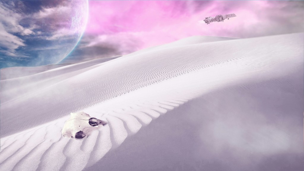 Orphans, Sel and his sister Terga, flee their desert planet, Koomi, on Captain Ortega’s deep space ship.